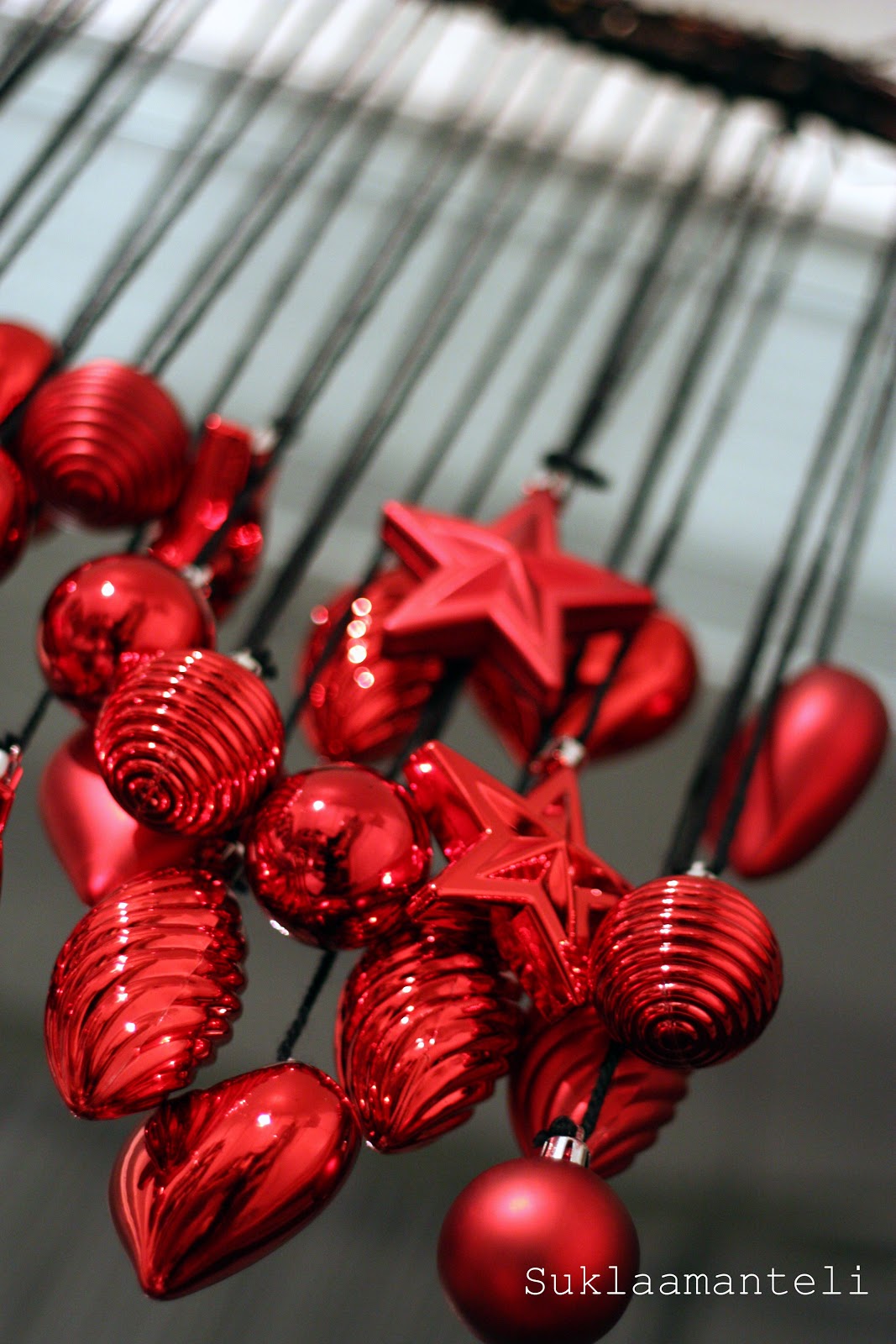 As Christmas is on its way I decided to do some more decorations to my home. These have a bit more Christmas spirit and are more colorful. One window got decorations made out of Christmas tree decorations and vestibule some other decorations which I had.